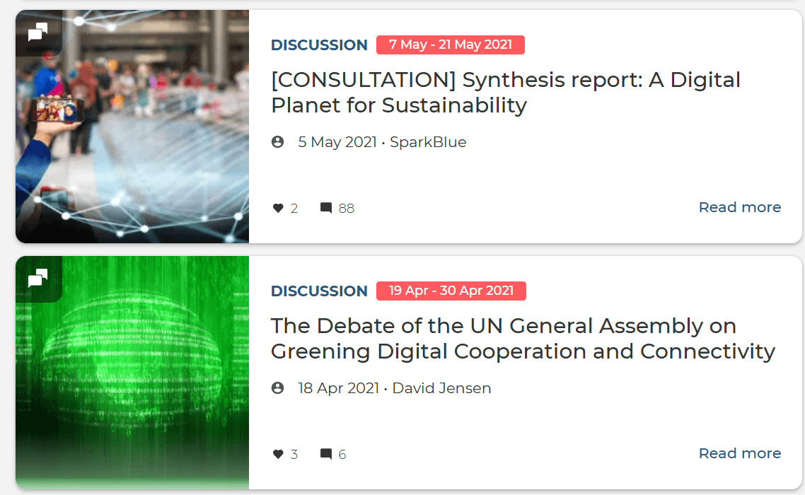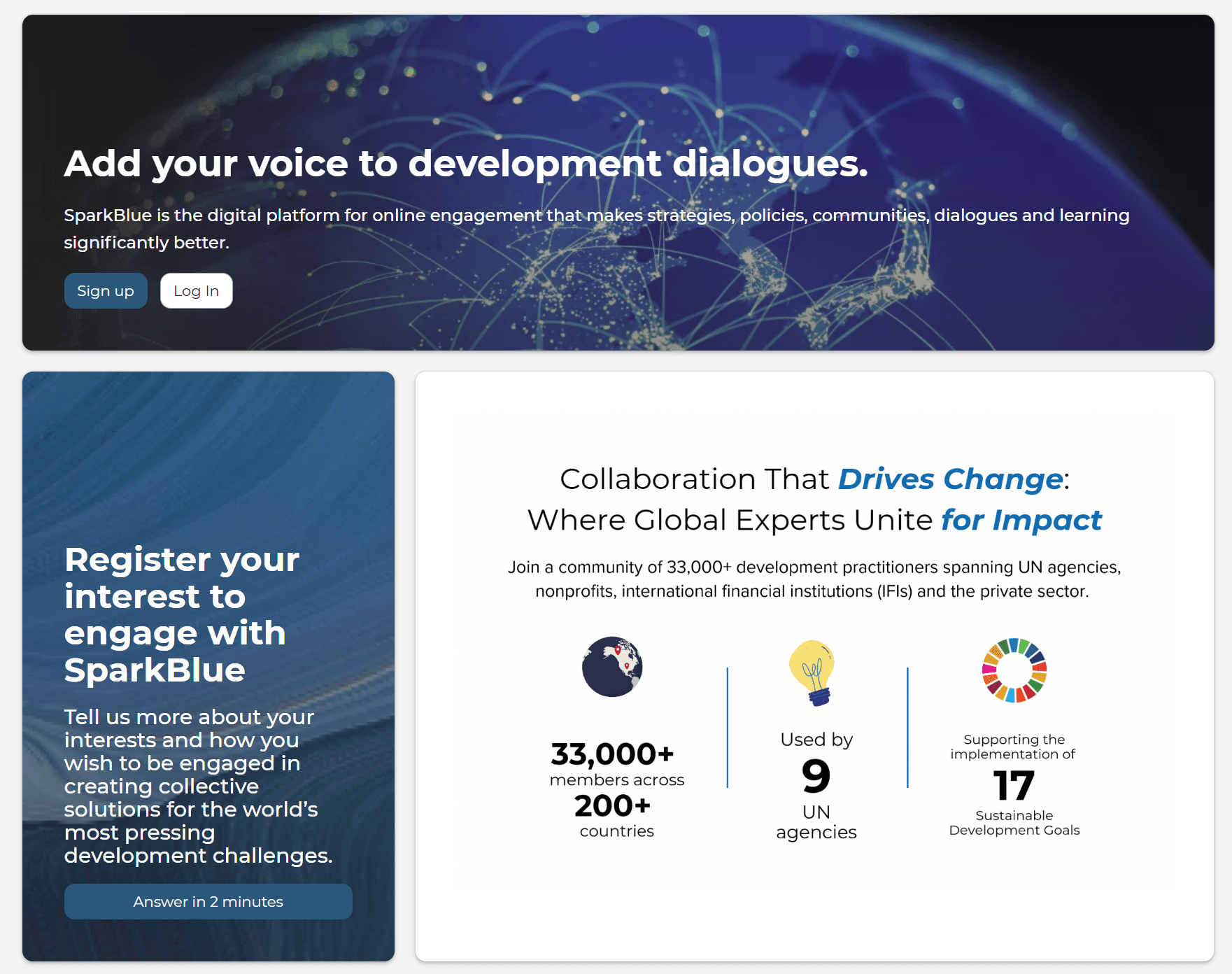 Im Rahmen des Entwicklungsprogramms der Vereinten Nationen stellt die UNO eine Plattform für Online-Engagement bereit, um Mitglieder weltweit zusammenzubringen.