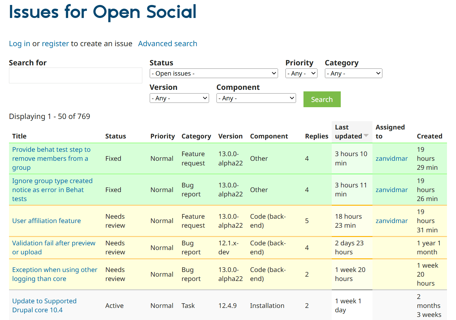 - Fehlerberichte betreffen praktisch alle Bereiche der Distribution, wie Gruppenverwaltung, Nutzer-E-Mails, Design, Sicherheit, Einbindung von Übersetzungen und Upload von Bildern.