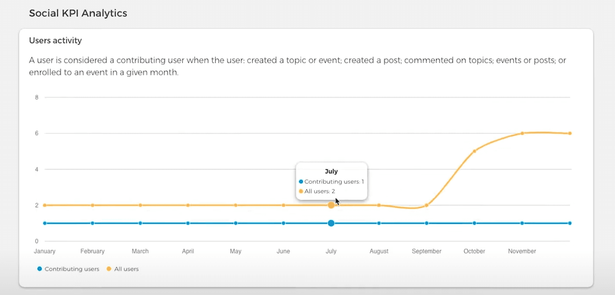 Das Dashboard für Admins ermöglicht es Ihnen, genau zu überwachen, wie sich Ihre Community entwickelt und performt:
